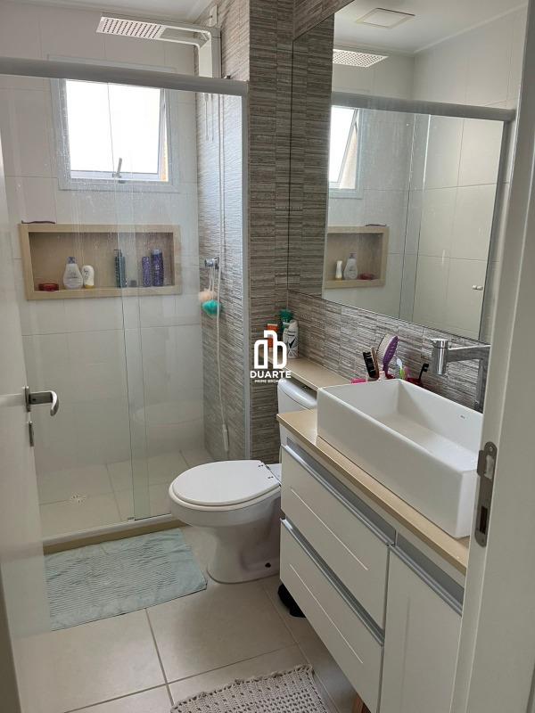 São 2 banheiros no total e ambientes climatizados com ar-condicionado na sala e nos quartos.
