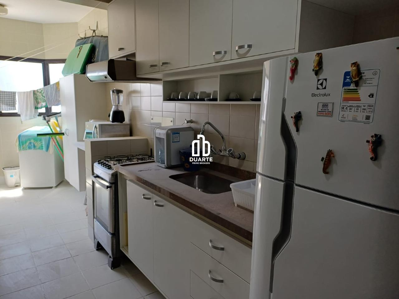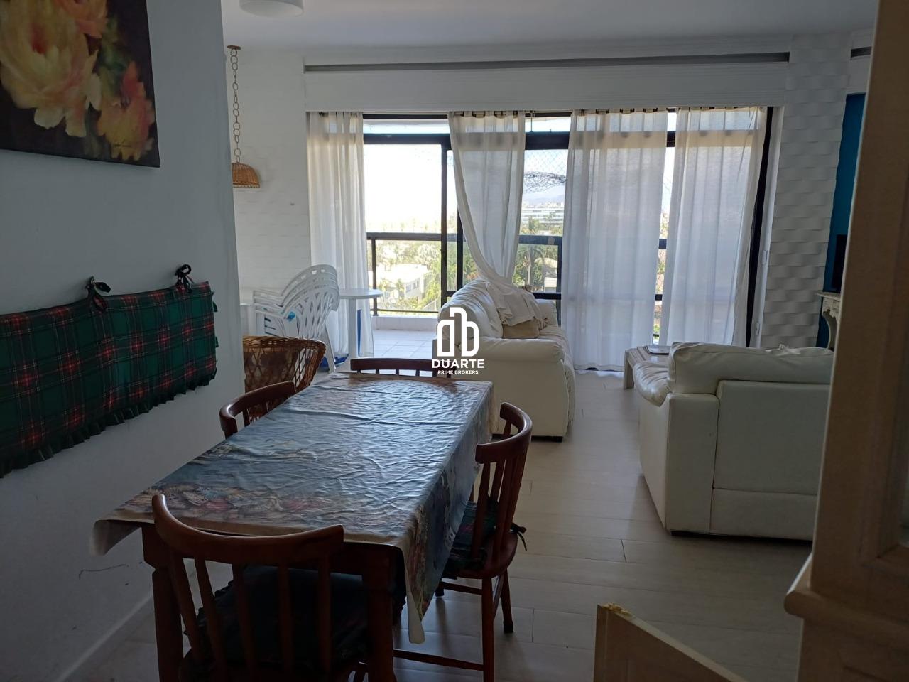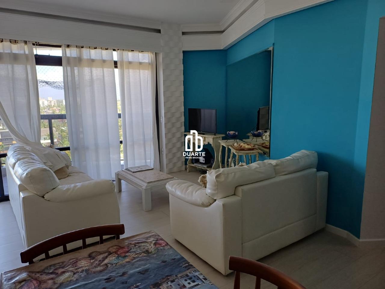 Locação de apartamento residencial em Riviera, Bertioga. 90 m² de área interna, 2 dormitórios (1 suíte), 3 banheiros e 1 vaga. Frente, sol da manhã, vista para o mar e mobiliado.