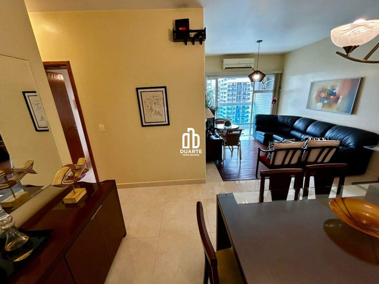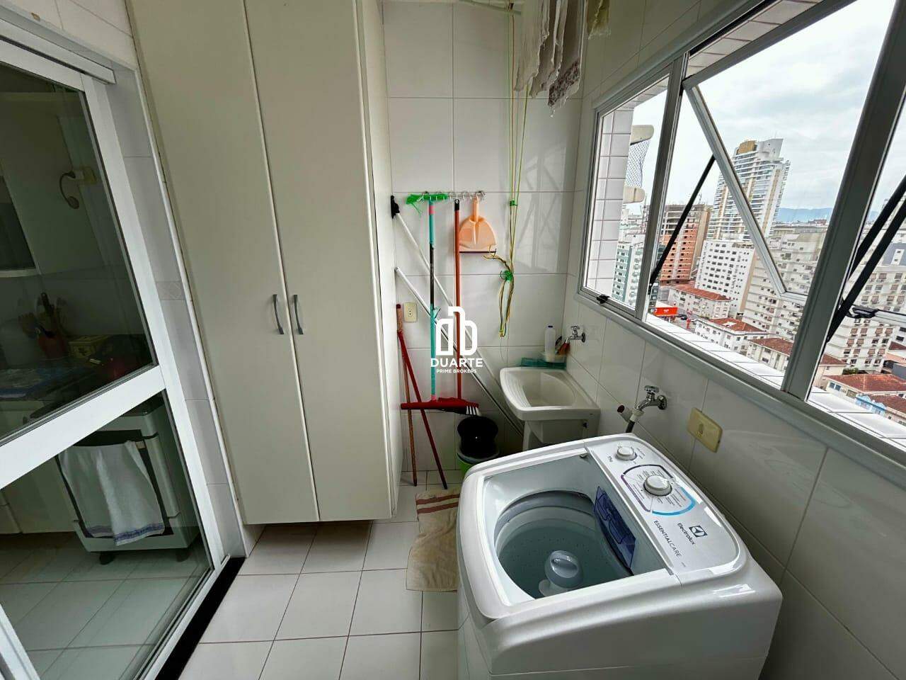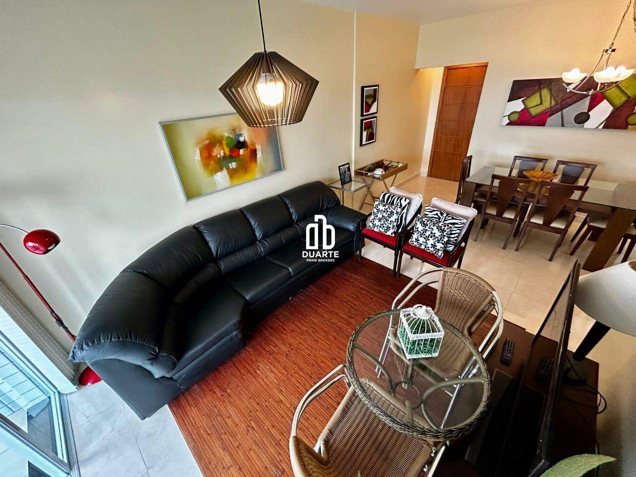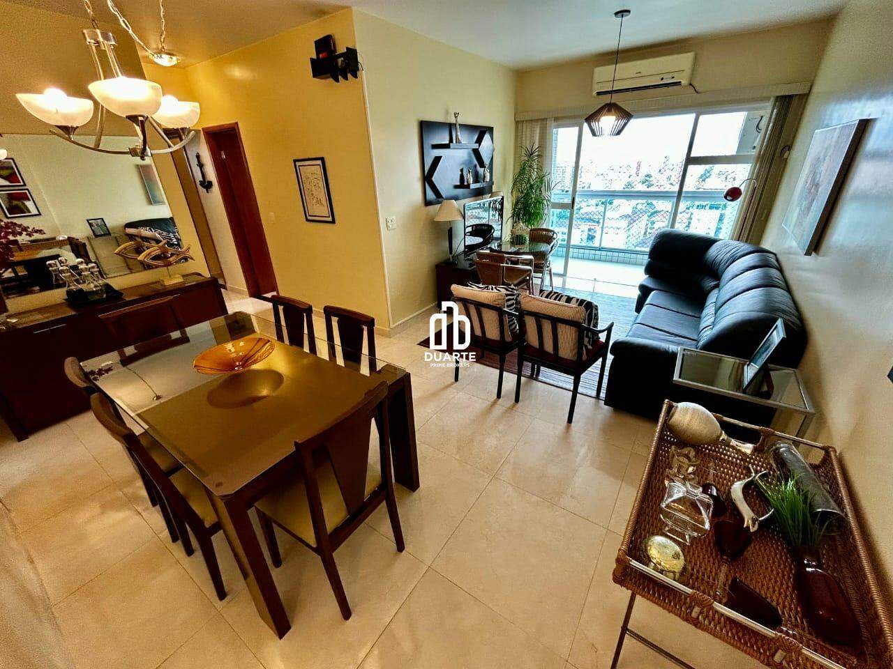 Apartamento a 2 quadras da praia com 114 m² de área útil, sala ampla em 2 ambientes, varanda com vista livre para a cidade, banheiro social, cozinha independente e dependência completa para funcionário.