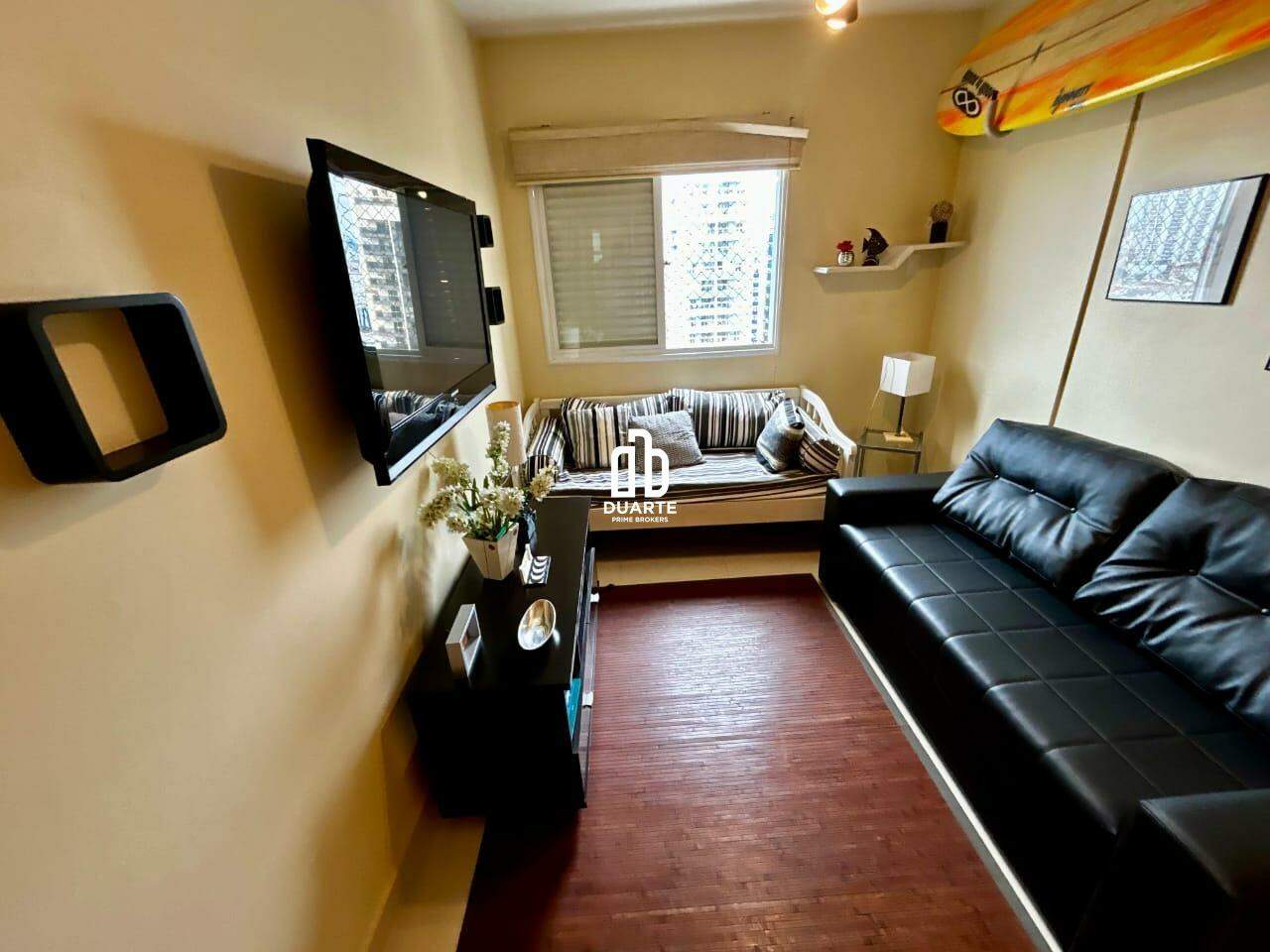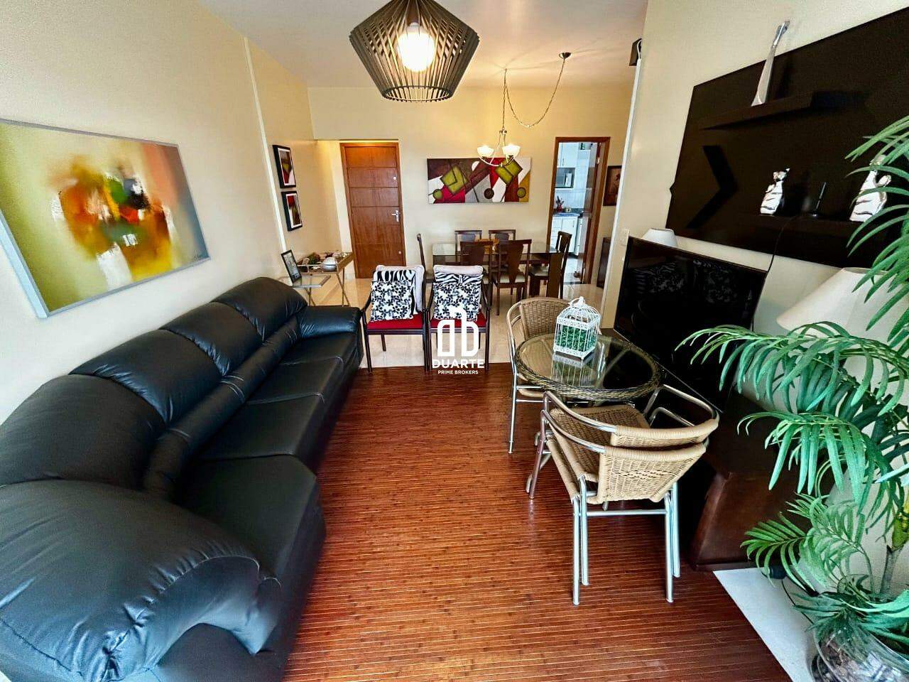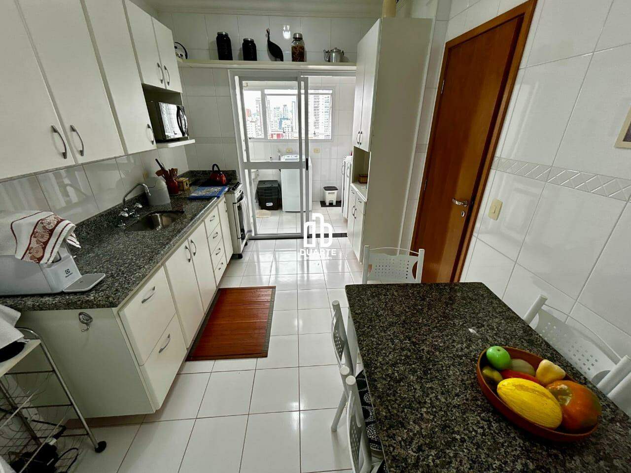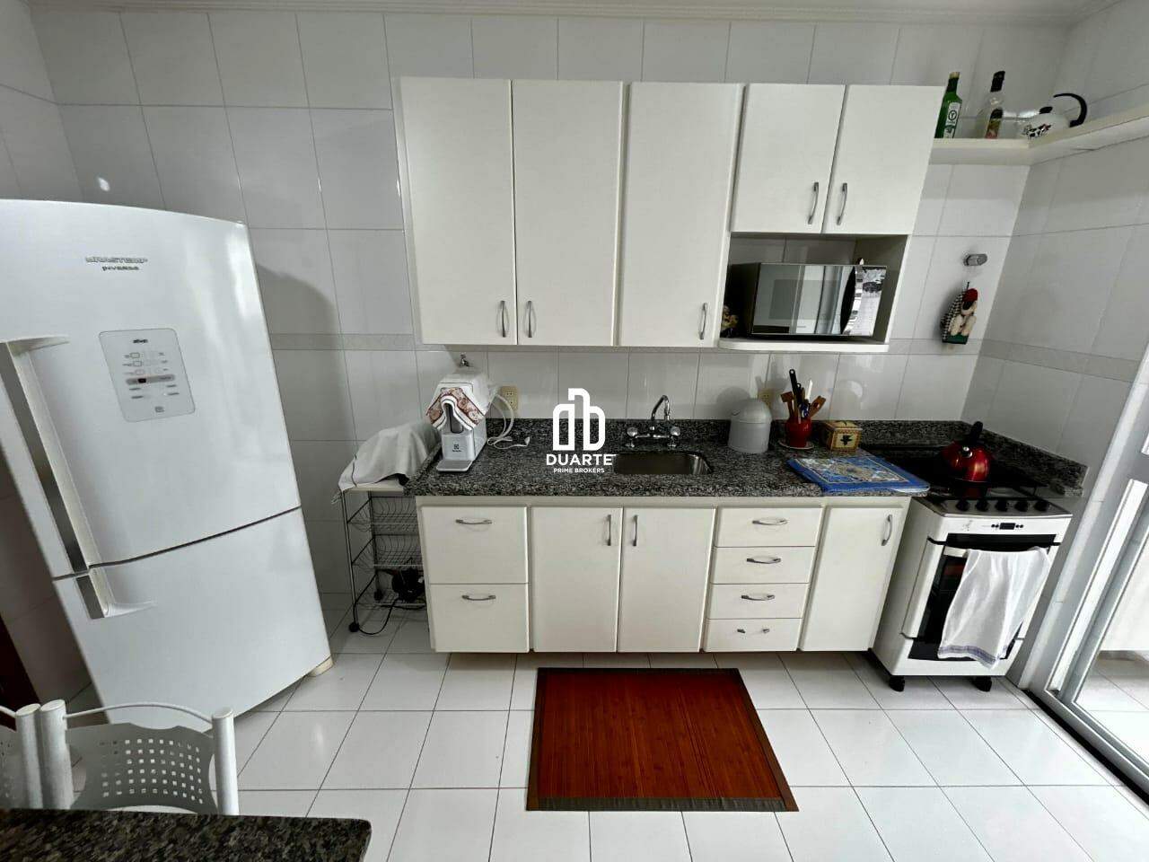 Apartamento a 2 quadras da praia com 114 m² de área útil, sala ampla em 2 ambientes, varanda com vista livre para a cidade, banheiro social, cozinha independente e dependência completa para funcionário.