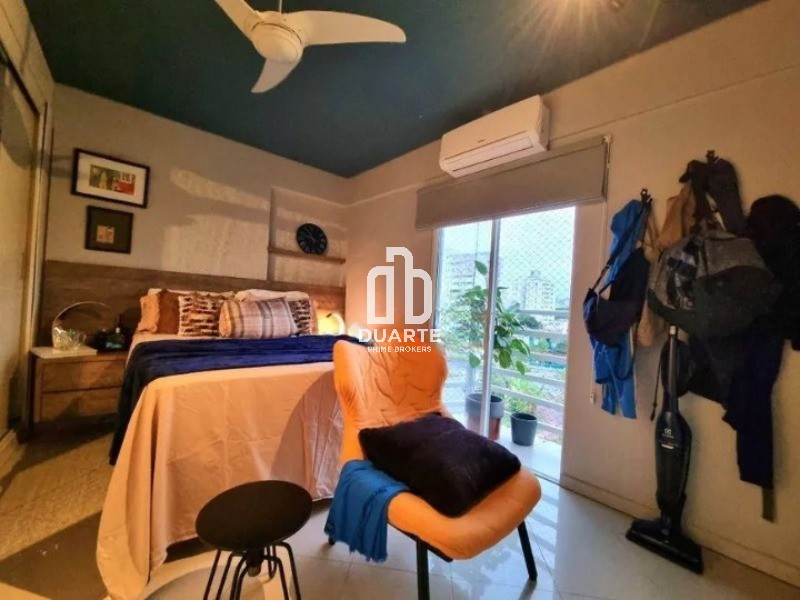 Com piso todo em porcelanato, iluminação direta e indireta, teto rebaixado em gesso e paredes com acabamento em cimento queimado, este apartamento foi modernizado para atender às necessidades dos moradores mais exigentes.
