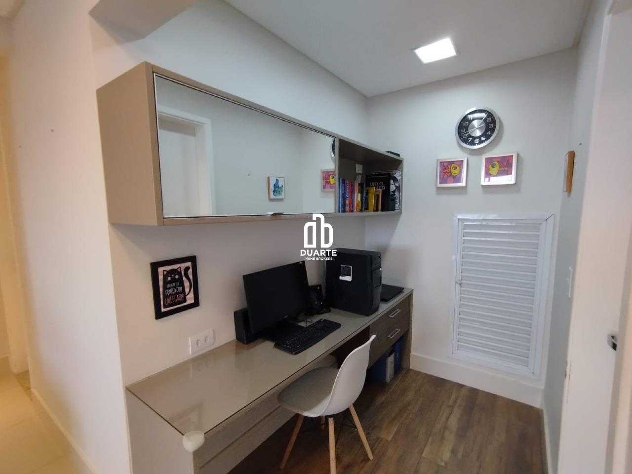 São 111 m² de área útil, atualmente com 2 suítes, lavabo, home office, sala ampliada em 2 ótimos ambientes, varanda com churrasqueira, cozinha totalmente planejada e equipada e área de serviço
