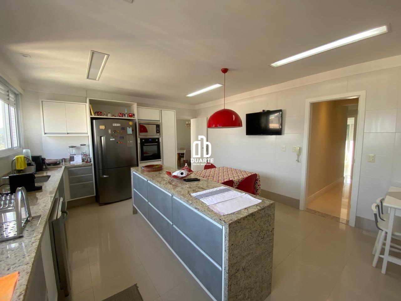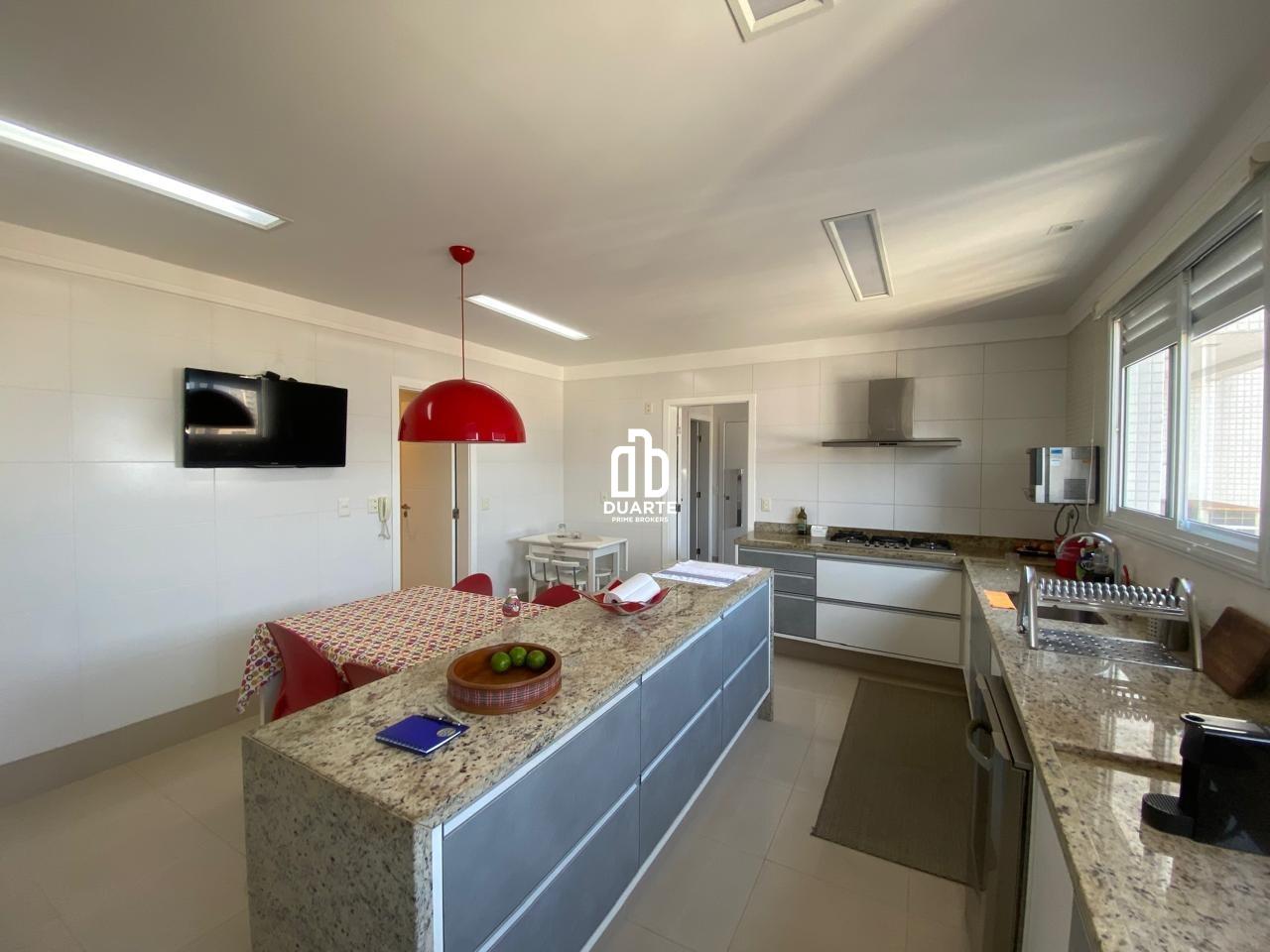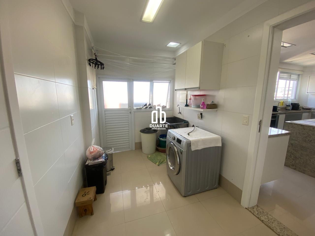 A cozinha é moderna e funcional, equipada com móveis planejados de excelente qualidade, proporcionando organização e praticidade. Complementando o ambiente, a área de serviço é espaçosa e bem ventilada, ideal para as tarefas do dia a dia, além de contar com uma área técnica discreta e bem posicionada. Há ainda um lavabo que atende perfeitamente às visitas.