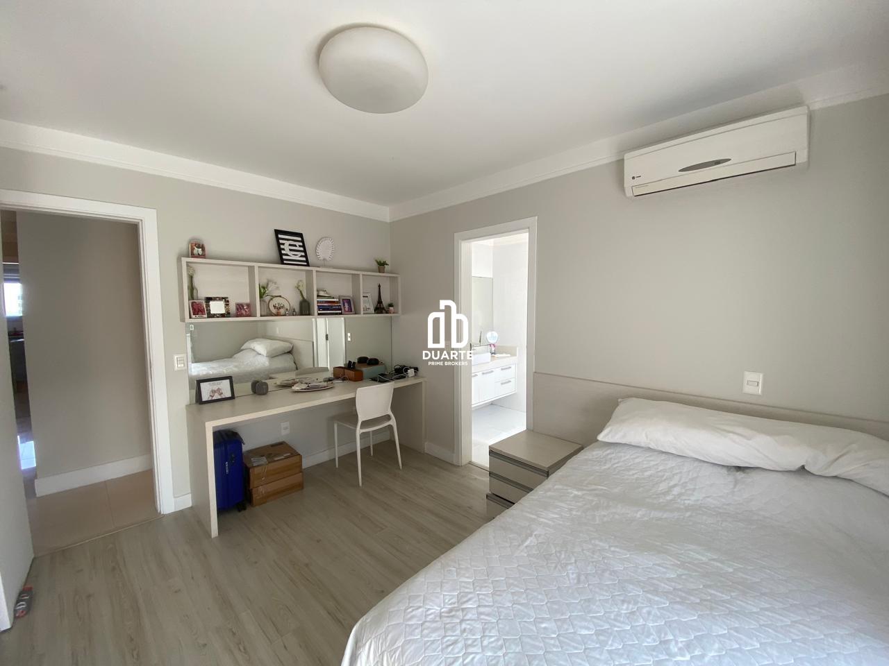 O imóvel conta com quatro dormitórios, todos suítes, garantindo total privacidade e comodidade para toda a família. Dois dos quartos possuem varanda, oferecendo ainda mais luminosidade e um toque especial de exclusividade. A suíte master é um verdadeiro refúgio, com amplo closet e banheiro equipado com banheira, ideal para relaxar após um longo dia.