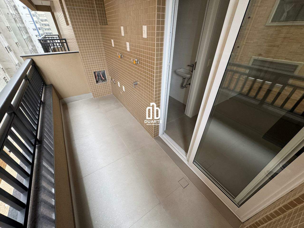 Area de serviço espaçosa com banheiro de serviço e outra varanda que acomoda a área técnica.