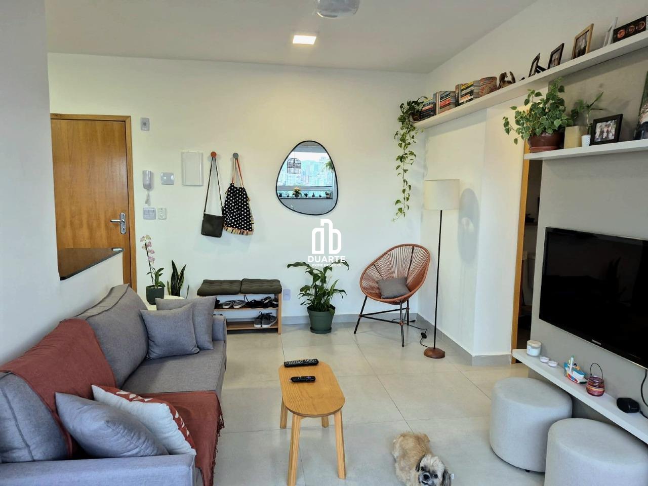 Sala ampla em 2 ambientes com varanda gourmet, cozinha em conceito aberto com bancada americana. Área de serviço integrada. Passagem para varanda com pia e bancada para churrasqueira elétrica/ponto grill. São 2 quartos sendo 1 suíte e o segundo quarto podendo ser usado como home office também, possui uma vaga de garagem.