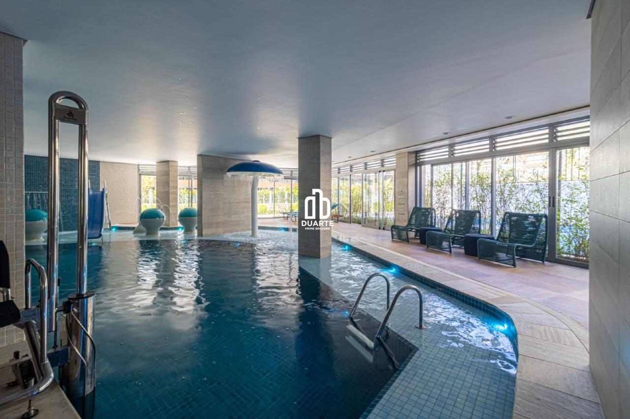 Venda de apartamento residencial na Riviera, Bertioga, SP. Desocupado e disponível para financiamento. Área interna de 140,78 m², posição frontal, com vista para o mar. São 3 quartos, sendo 3 suítes, 2 salas, 5 banheiros, 2 varandas e 2 vagas na garagem. Acabamento em porcelanato, mobiliado, com sol pela manhã e varanda gourmet. Infraestrutura completa: cabeamento estruturado, água individual, interfone, portão eletrônico e segurança 24h. Lazer completo no condomínio: academia, piscina, quadra poliesportiva, sala de massagem, sala de jogos, wifi, churrasqueira, playground, salão de festas, sauna e espaço gourmet.