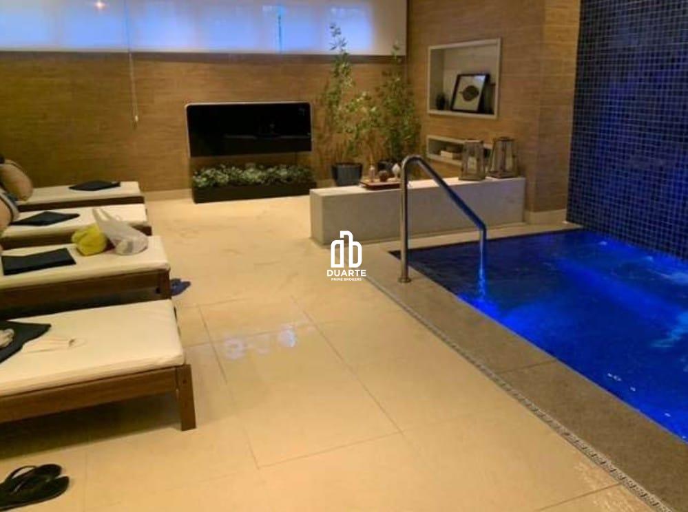 O imóvel oferece 2 vagas de garagem., além de uma área de lazer completa, piscina, churrasqueira e academia, conta com cinema , spa.