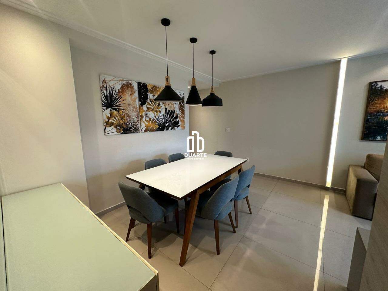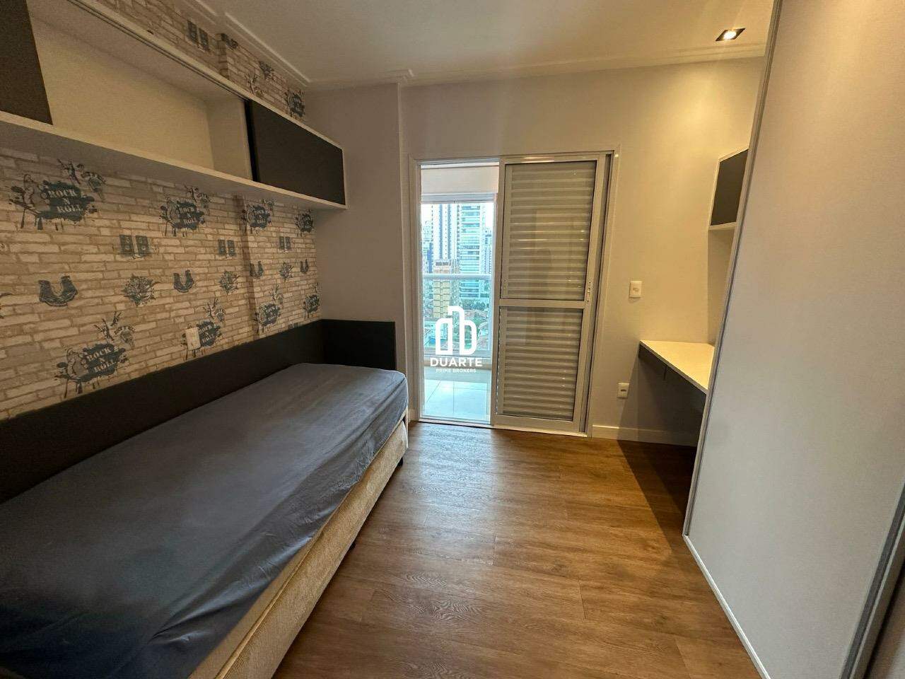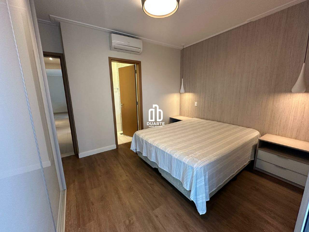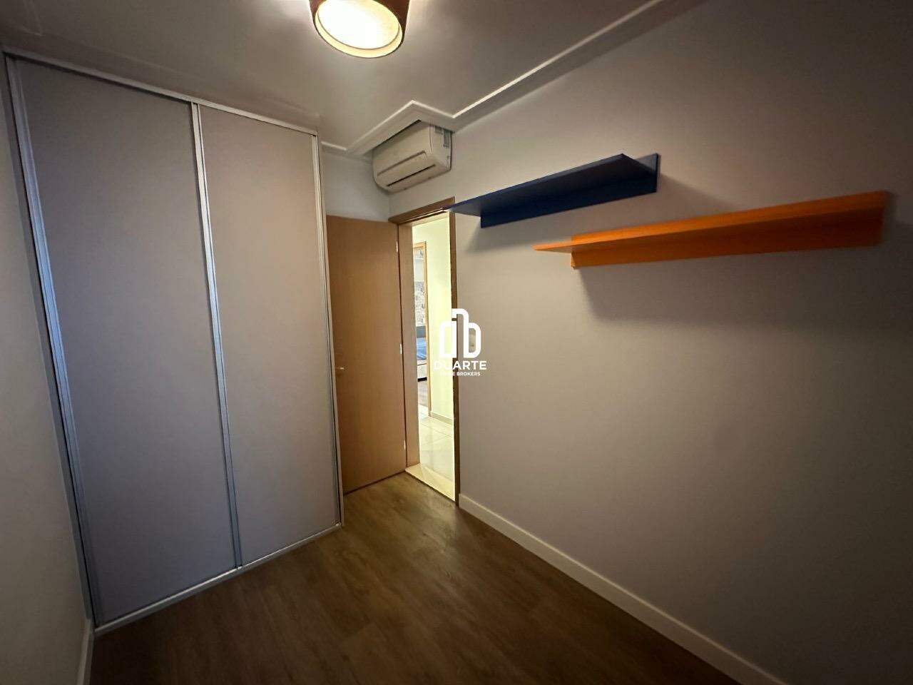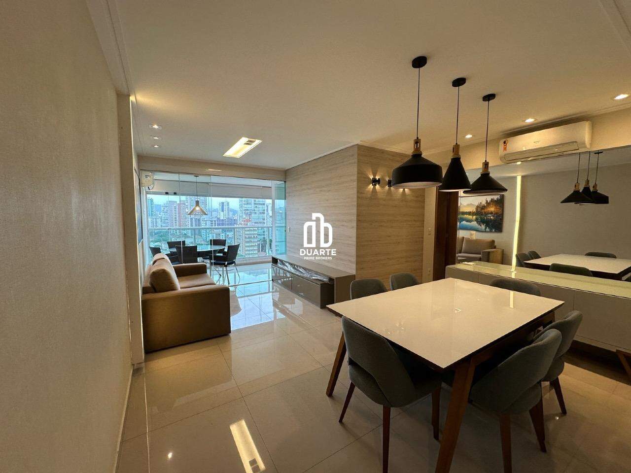 Imóvel todo mobiliado com móveis planejados e equipado com ar-condicionado na varanda, sala e quartos.